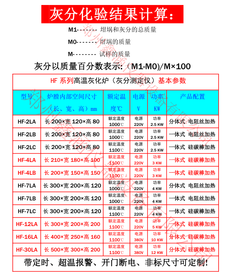 濮陽硅碳棒加熱高溫灰化爐HF-4LB技術參數